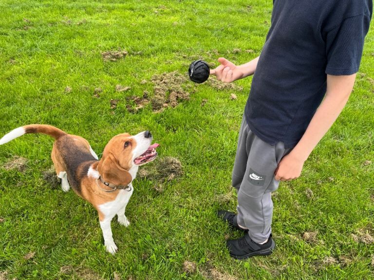 He would be best in a home with people who understand Beagles or similar breeds and can give him consistent structure and reassurance.